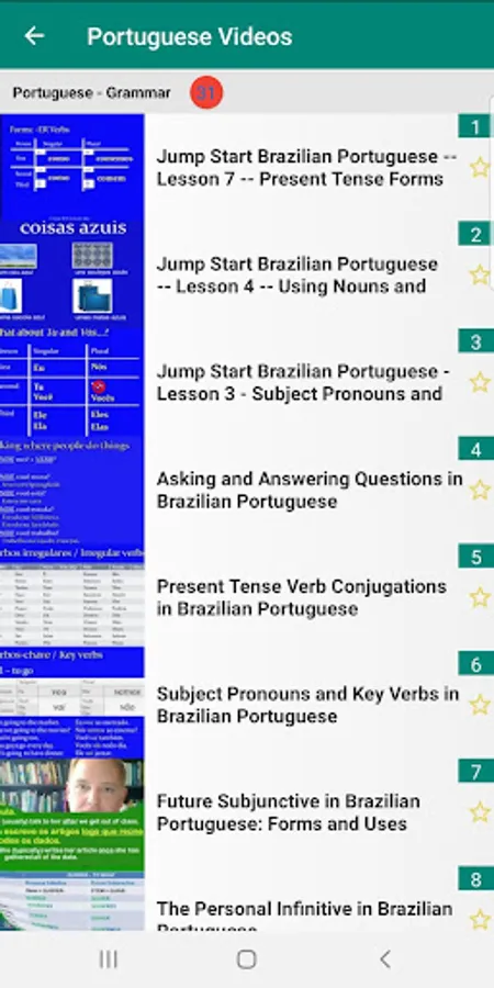 This is an application for learning Portuguese by videos, more than 21000 videos and 1000 playlists which are classified orderly for common topics in Spanish such as: