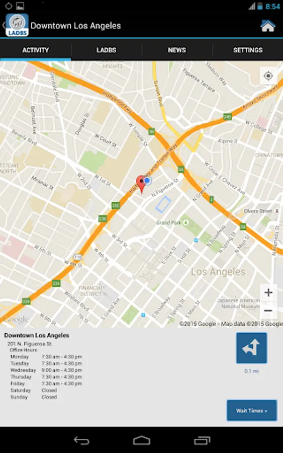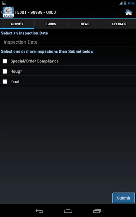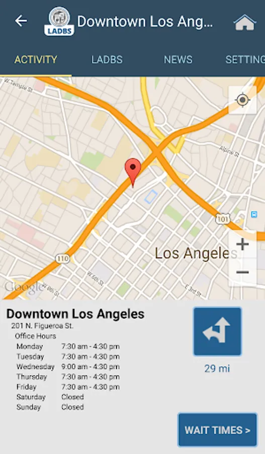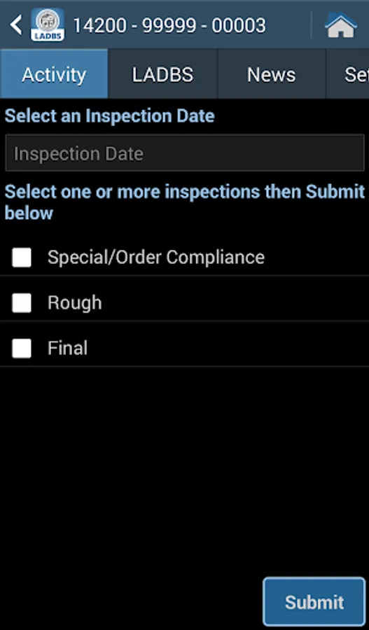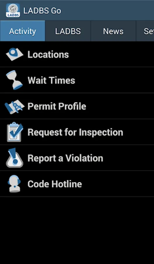 The Los Angeles Department of Building and Safety offers LADBS Go. A quick and easy way to find the nearest offices, request inspections, review permits, report violations, and get the latest wait times for the various Service Centers. Once you have requested an inspection, your information will be available in the application history, making it even quicker and easier to request additional inspections.