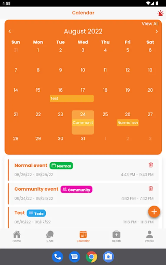 • Calendar - show your GrandCare events and to-dos, and add new ones right