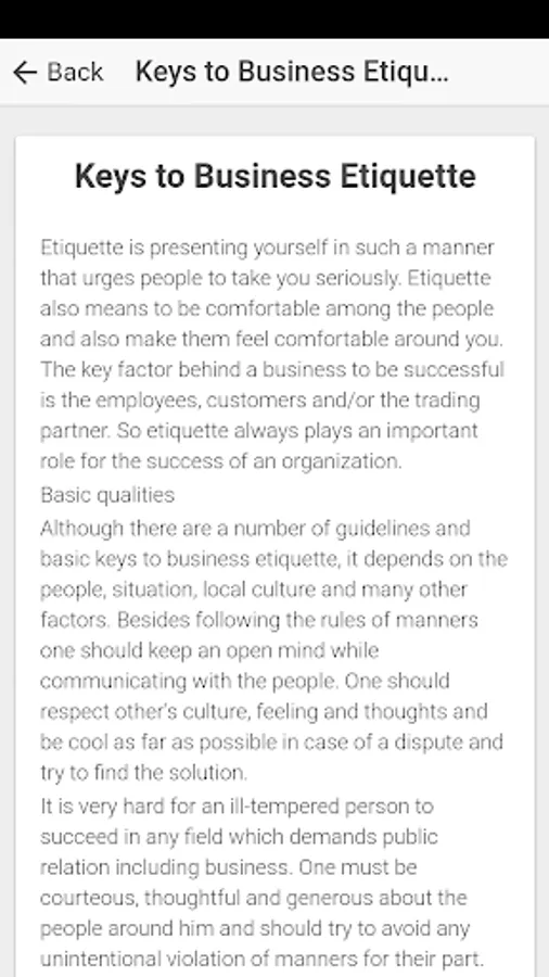 So, install this 'Business Etiquette & Office Etiquette' App for free and use it to learn and use business etiquette.