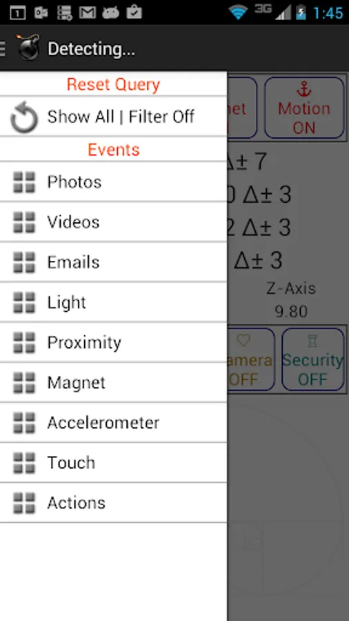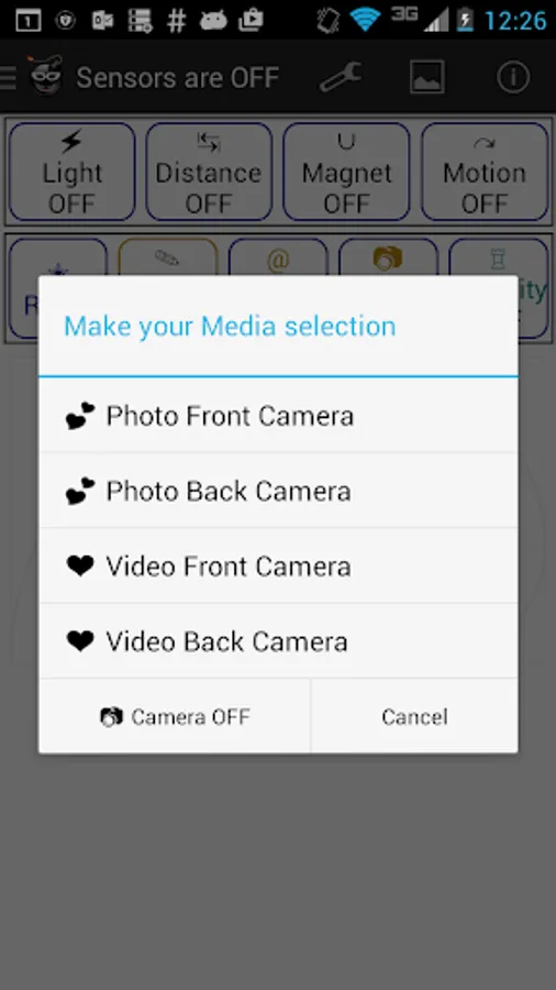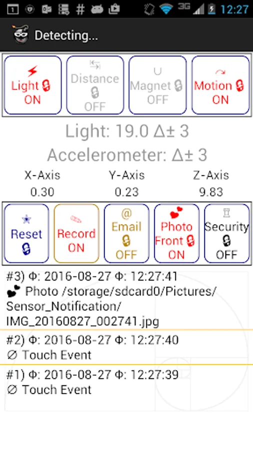 Use your camera feature to capture photos or videos and send them directly to yourself with your current phone via email. This app uses the following sensors: Light, Proximity, Magnet, and Accelerometer to detect its current surrounding.