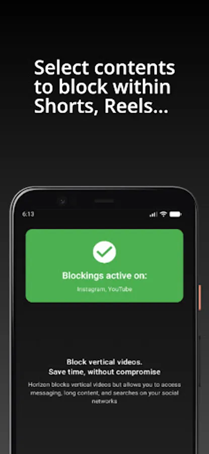Horizon uses Android’s Accessibility Service to detect short vertical videos inside your apps and automatically close them.