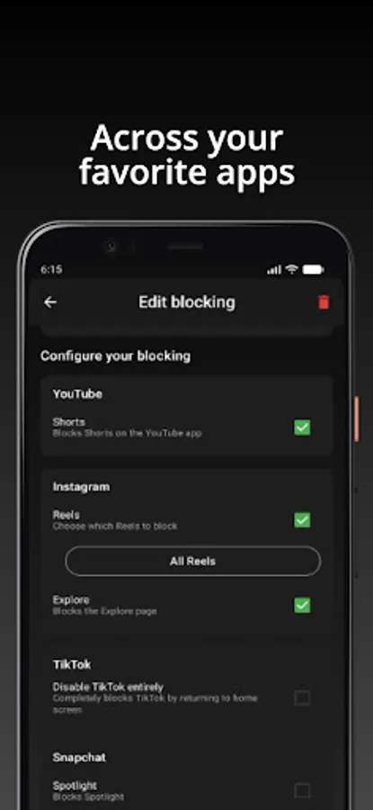 Set a daily limit for all short-form content. Once you reach it, Horizon blocks Shorts/Reels everywhere.