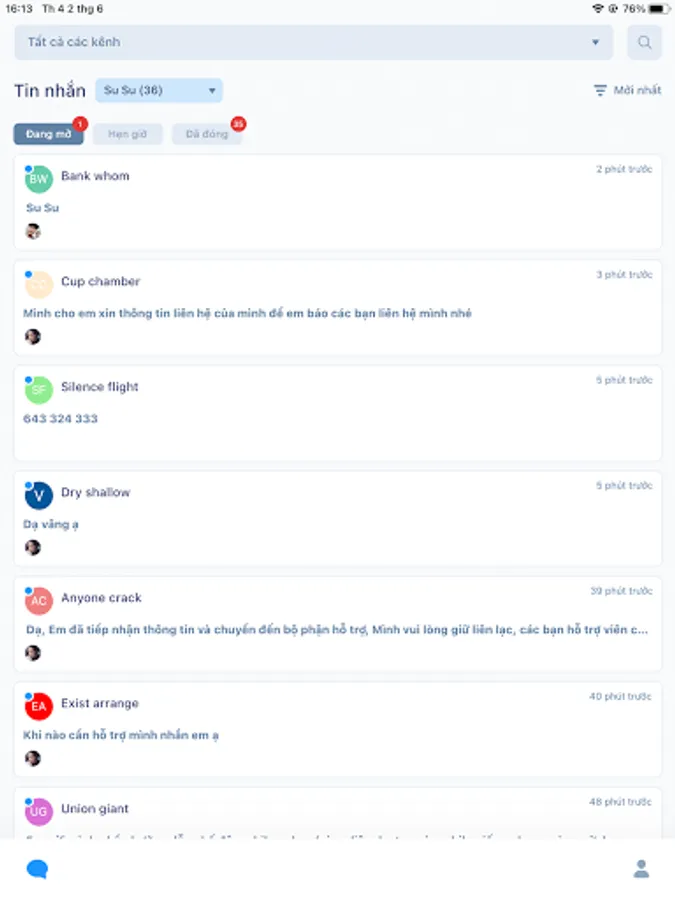 • Interact and communicate with multi-channel customers such as: Facebook, Messenger, Livechat Website, Zalo, Email...