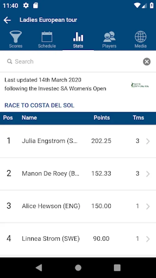 Get the latest information on the Ladies European Tour. View the current leaders, Order of Merit and upcoming events.