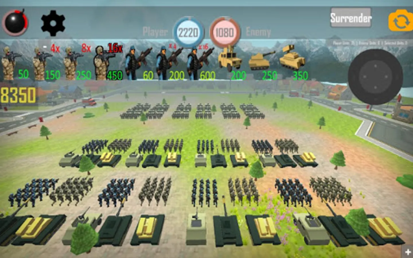 World War 3 has erupted. People are tired of war of great armies and revolted world wide. Now many of western countries under Militia control... That is terrible for modern world, they do not listen any international law or power. Now you general decided to take the control from militia and conquer all world. Be careful, there are so many very strong equipped armies among terrorist militia forces. You will start from the weak one and lastly conquer the most strongest countries of the revolted world.