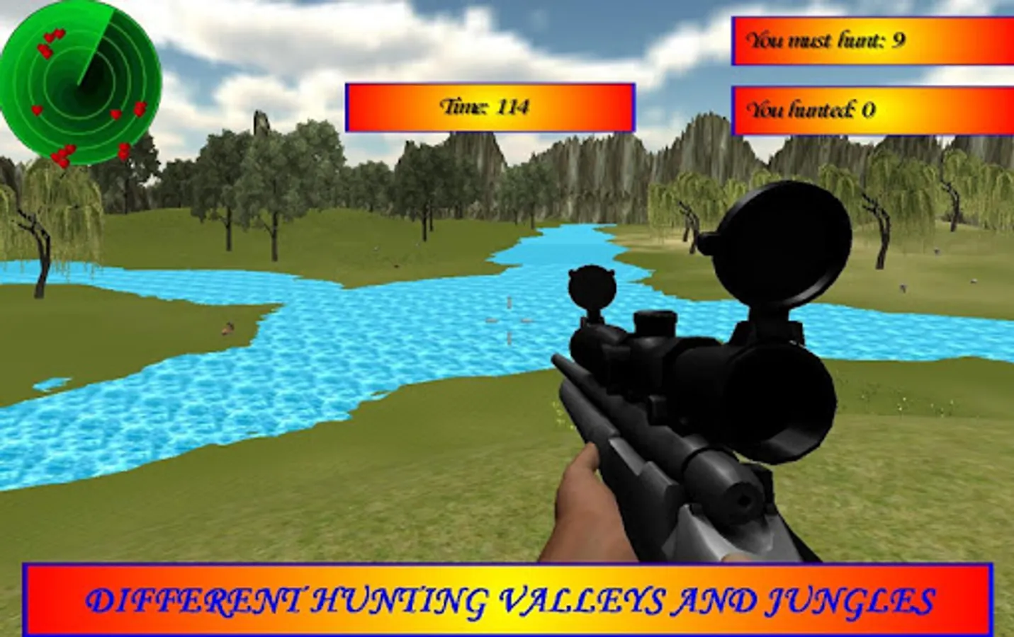 ANIMAL HUNTER 2016 3D is a relaxing first person perspective animal hunting game. Users can look around the map by swiping the screen and moving anywhere there they want. The game has 16 hunting levels so far. You hunt in valleys and jungles surrounded by mountains and sometimes near the rivers and lake. You have 2 semi automatic sniper guns in the game. You can hunt deers, zebras, rabbits, pigs and even ducks. Special duck hunting levels included for you to enjoy!