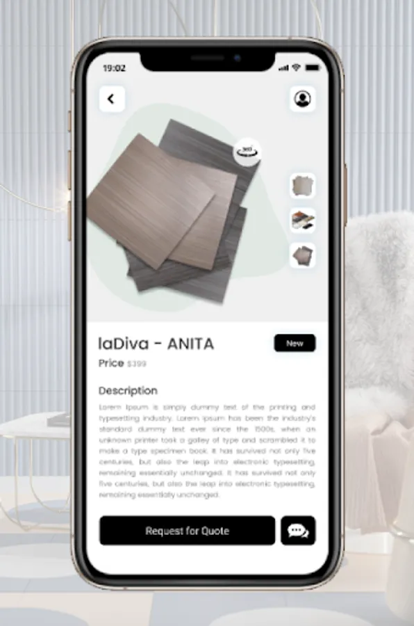 The official Ladiva app allows users to view the Ladiva catalog in 2D and 3D formats. Register your account to view all the Ladiva catalogs with interactive 3D tiles.