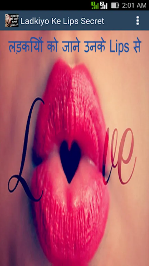 Yeh app designed kiya gaya he ladkiyo ko jane ke liye. Aap ladkiyo ka swabhav jan sakte hai unke lips dekhkar. Yeh app aapko help karega ki ladkiyo ko kaise pataye aur aapna jeevan bhar sathi banaye.Aur aapne sansar ko aacha banaye.yeh app cover karta hai ki aap hot ladki ya hot aunty aur bhabhi ko kaise jaane woh bhi audio mein.is app ke madat se aap women body secrets bhi jan sakoge. is mein bahut audio diye hai jo aap ko help karenge.