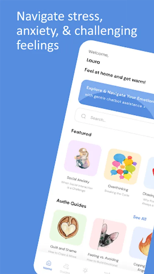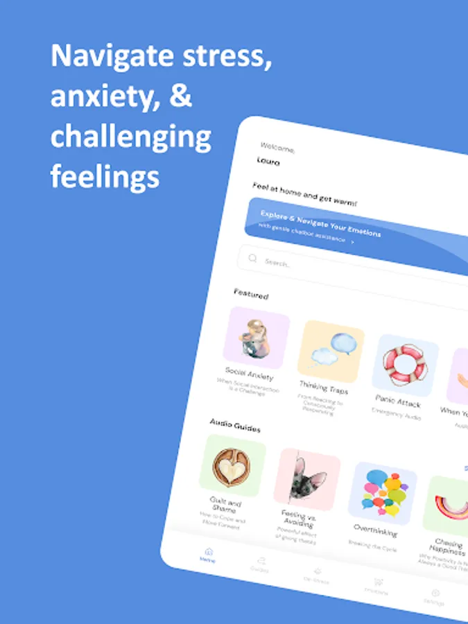 Download the app for free and access the Emotional Navigator chatbot, some of the mental health Audio Guides, and some of the De-Stress exercises at any time. If you want more, you can get unlimited access to all app content with the monthly, quarterly, or yearly subscription, available with a free seven-day trial.
