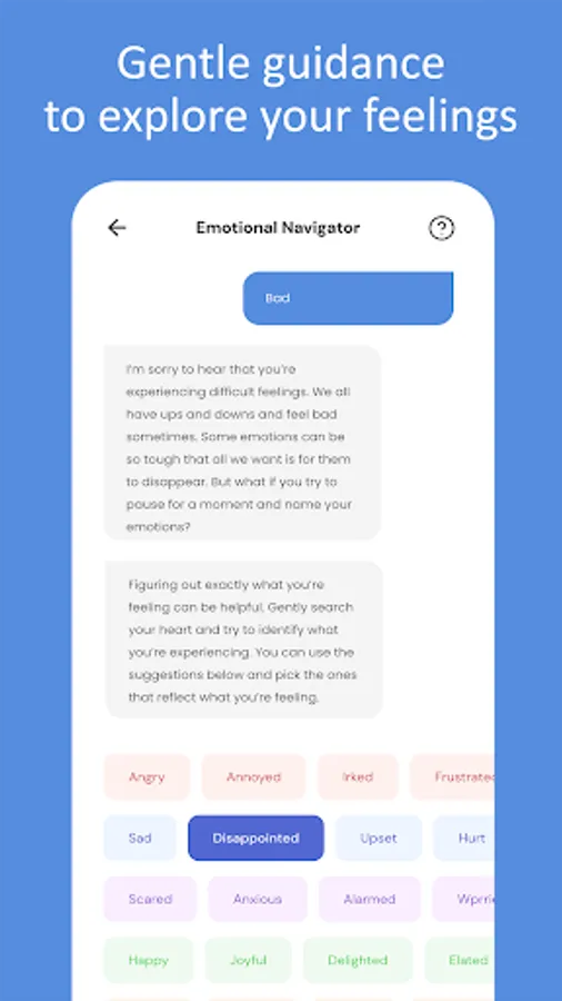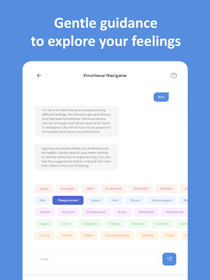 💬 Emotional Navigator: A mental health chatbot designed to help you better understand and process your emotions. It will gently guide you as you observe your feelings, identify the needs behind them, explore and reframe your thoughts, and choose the best ways to regulate and manage your emotions. This tool involves the CBT and ACT therapy approaches.