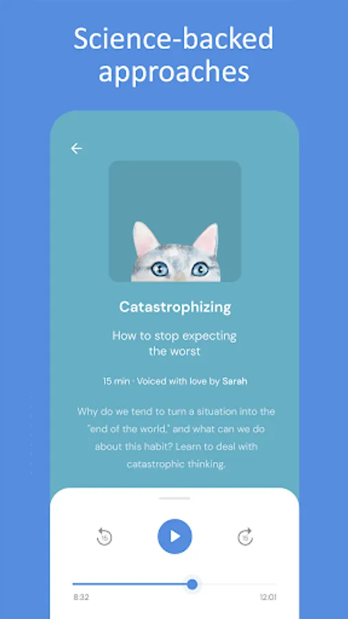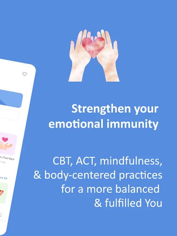 The app content is based on neuroscience evidence and research-backed approaches such as Cognitive Behavioral Therapy (CBT), Acceptance & Commitment Therapy (ACT), Positive Psychology, Body-centered therapies, and Mindfulness.