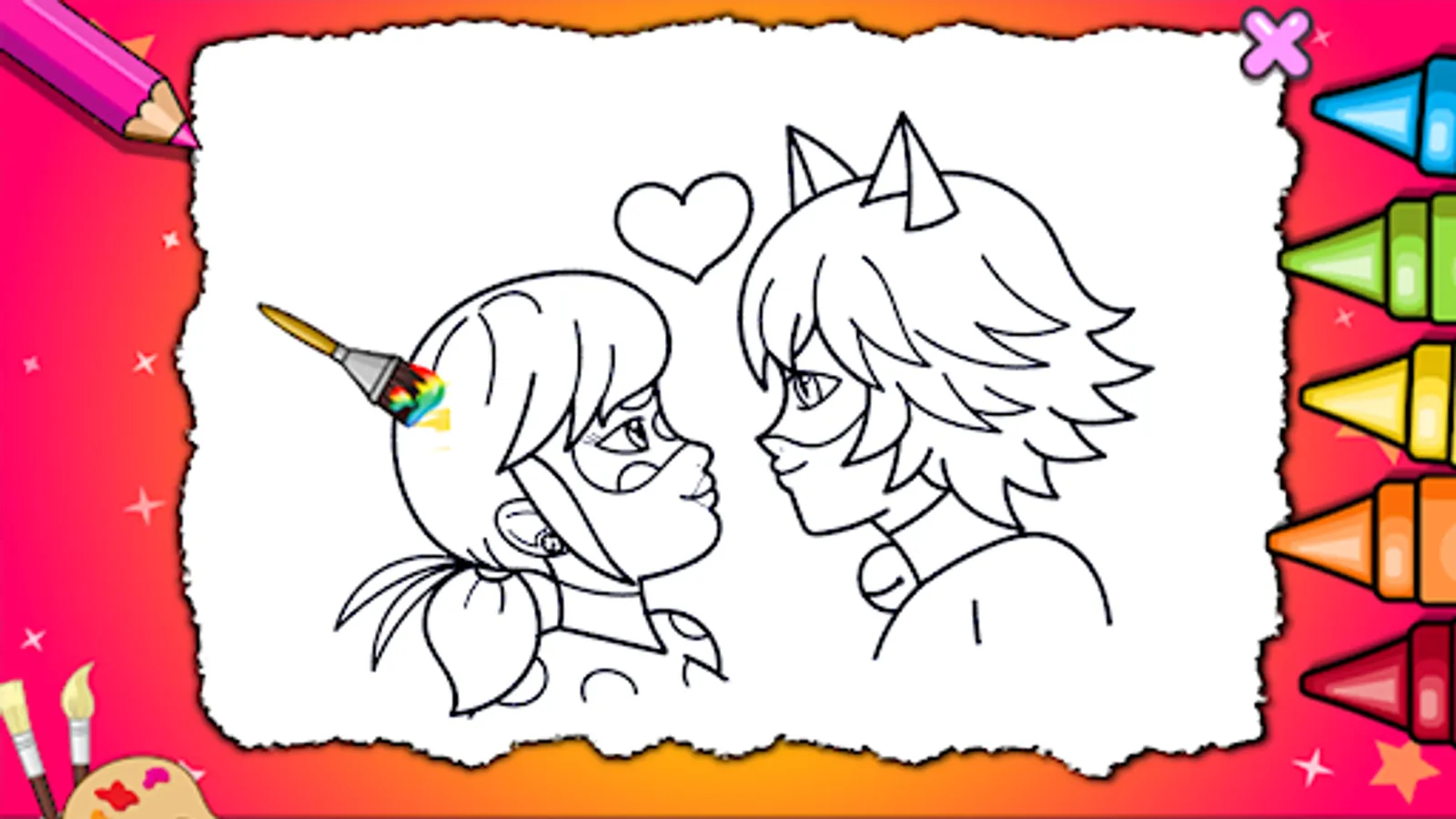 Ladybug Coloring princess and the miraculou girls with cat of noire is an educational coloring book and one of the best miraculeus coloring game
