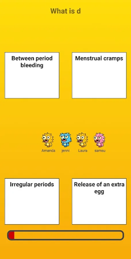Compete against up to 5 peers in this trivia game. The female health quiz questions are primarily about female period cycles. The game makes learning easy and fun.