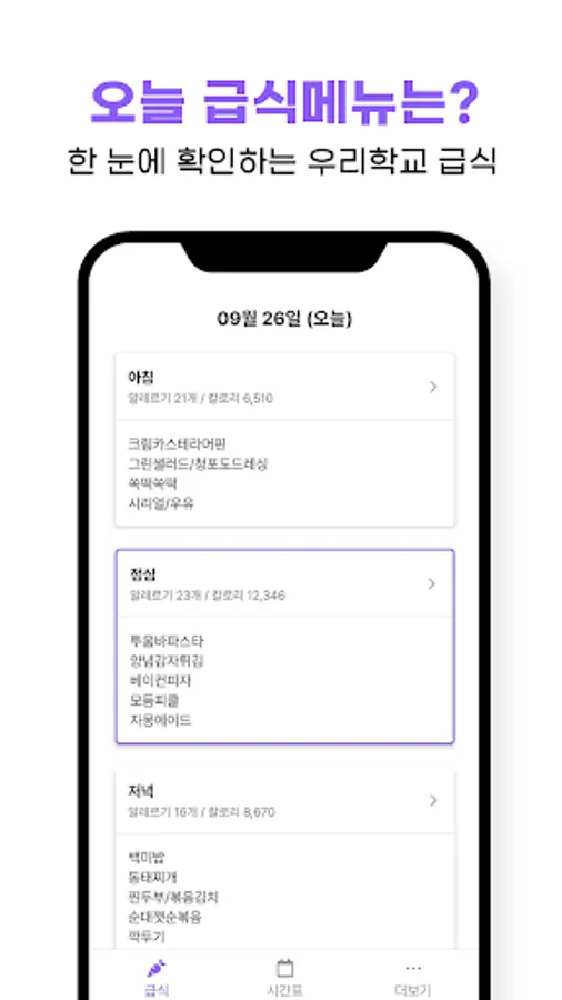 You can check our school lunch menu at a glance. Anyone in elementary/middle/high school can search for our school name, register, and check the daily lunch menu.