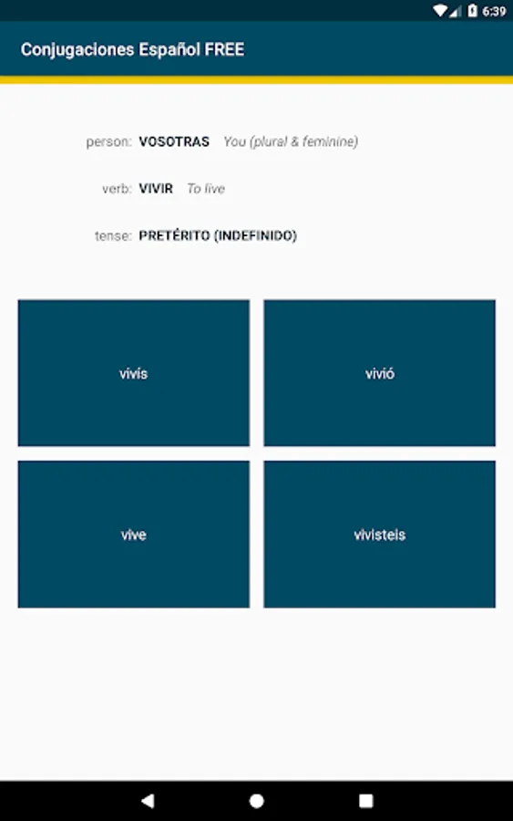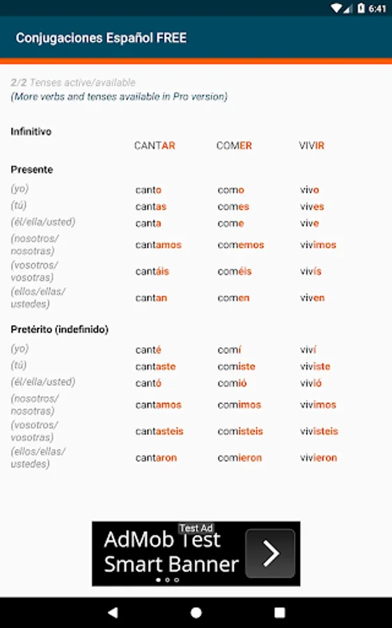 This app comes from my own experience teaching students of Spanish, and is an attempt at making the sometimes challenging verb conjugations a little easier. If you find it helpful, please leave a good rating / tell your friends / consider upgrading to the Pro version.