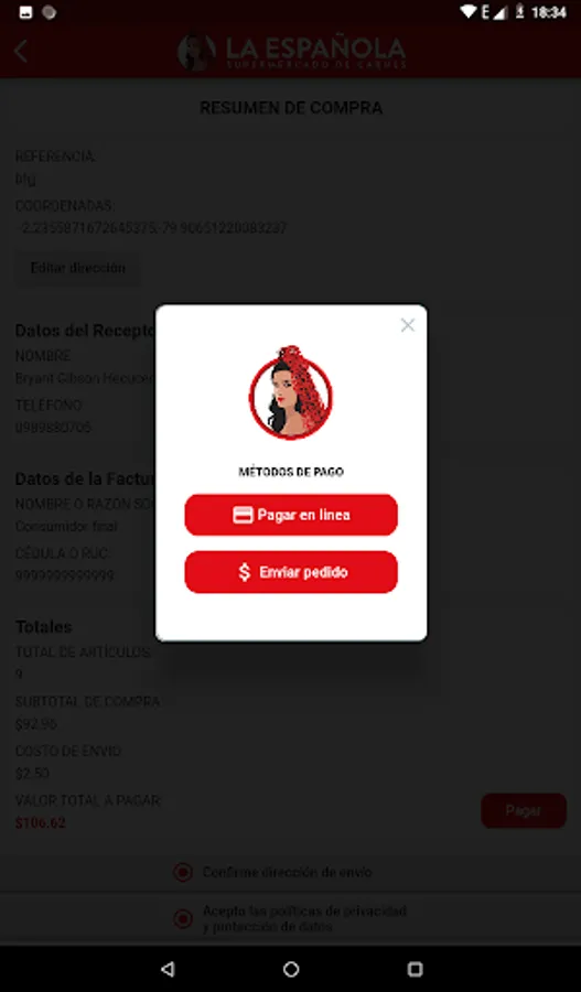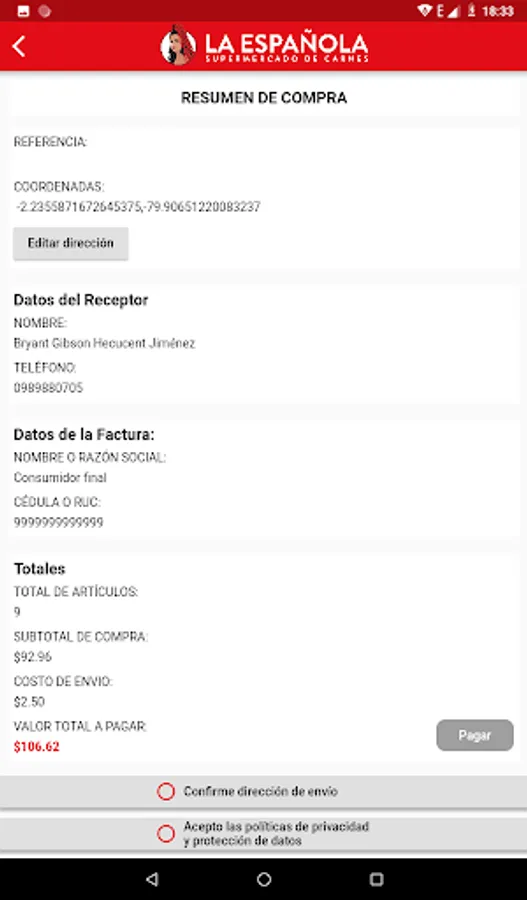 App that allows you to order from Spanish supermarkets for delivery and payment at home, or to buy directly using your debit or credit cards. Deliveries are made in all sectors of Samborondón. There is also coverage in Los Ceibos, Urdesa, Miraflores, Puerto Azul, Ciudadela Paraíso, Centenario, la saiba, Ciudadela 9 de Octubre, la pradera, la coviem, los estos, luz del guayas, huancavilca, las acacias. To make your purchases, you must register with a valid email and password. Through the App, you can choose your delivery address using the map and providing the contact details correctly. The application has a search bar and classification by categories to facilitate the location of the products.