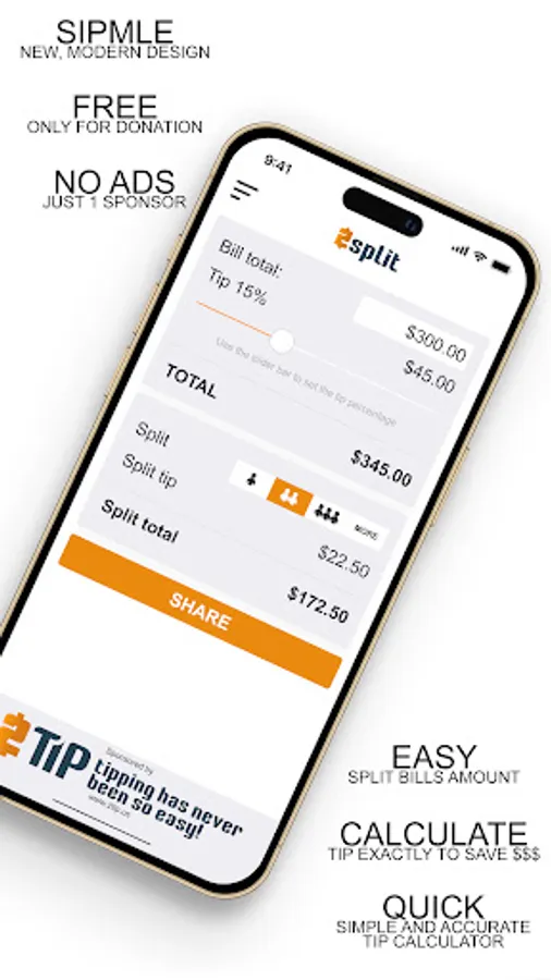 - Intuitive slider for adjusting tip percentage & splitters