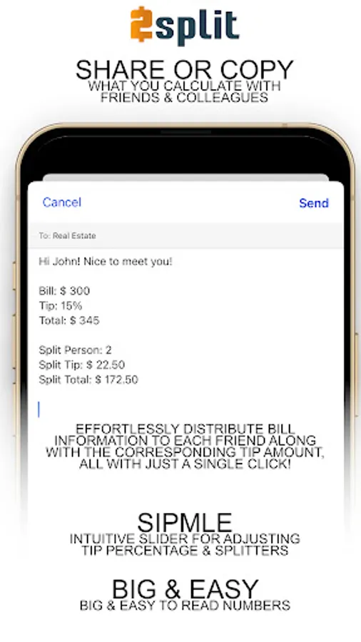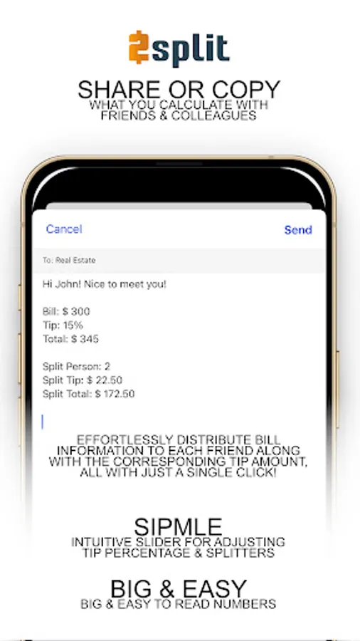 Effortlessly distribute bill information to each friend along with the corresponding tip amount, all with just a single click!