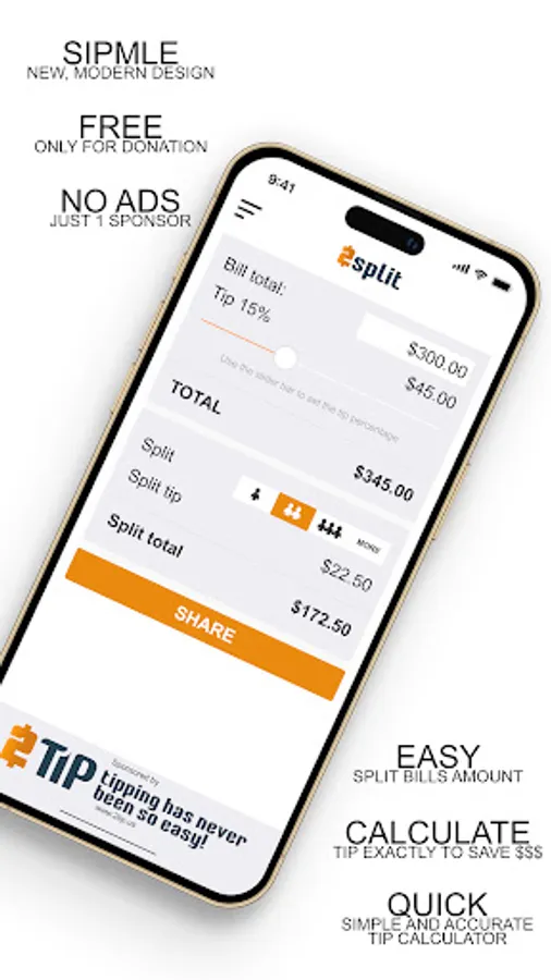 Maybe are you searching for a no-cost tip calculator that handles tip calculation and bill splitting among friends during restaurant or bar outings? Look no further than the split app. Featuring a contemporary and modern user interface, this app is designed to assist you in calculating tips seamlessly or splitting bills. This ad-free, free-of-charge tip calculator offers swift bill input and splitting capabilities, catering perfectly to individuals dining out, going on dates, or enjoying beverages with friends at social gatherings.