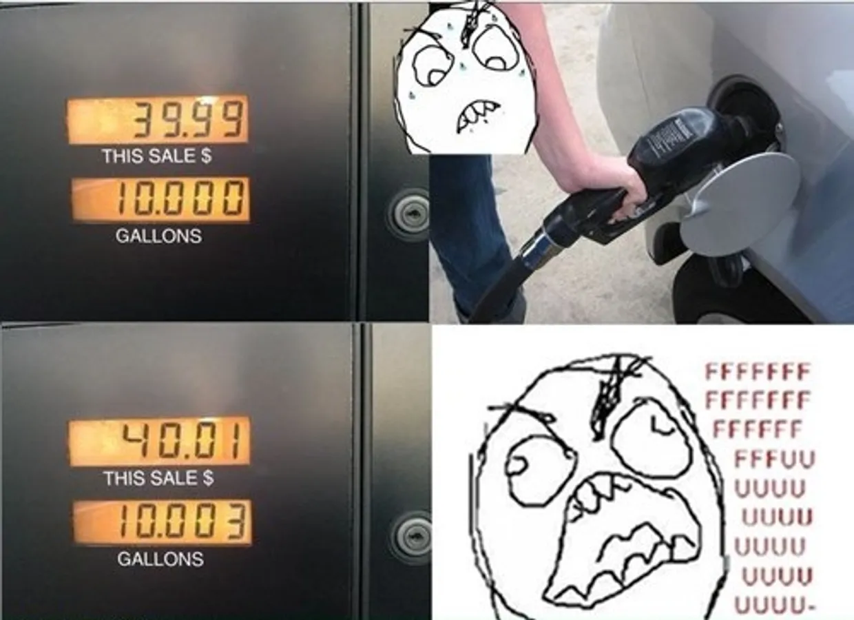 If you see that the gas pump stops short of a round number, do you keep pumping?