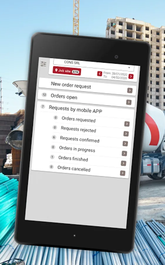 With the Holcim Direct application you are no longer limited by the dispatcher's working program for placing an order. You can place an order anytime, directly from the application! As simple as that, you will be able to find out the status of deliveries at any time.