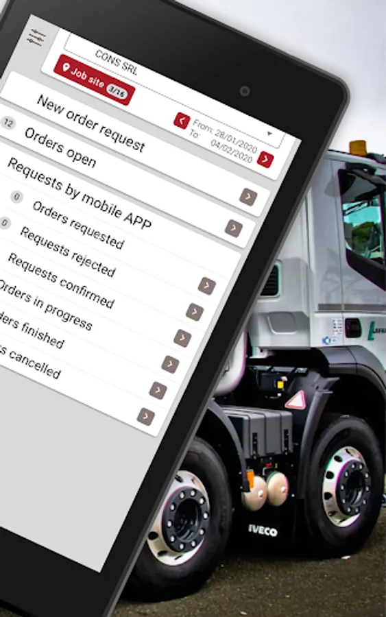 Thanks to the RMX SA application, you are no longer limited by the work time of the concrete plant dispatcher. You can place an order at any time, right from the app! It's that simple and you will be able to check the delivery status at any time.