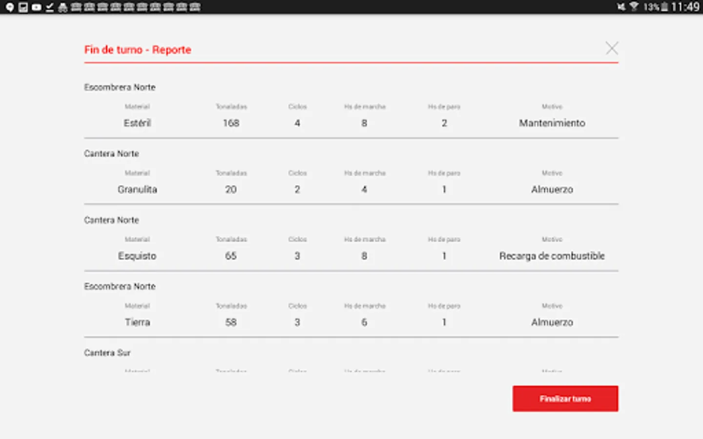 4) Record operations of: Trucks, Shovels, Drilling, Maintenance and Shredders.