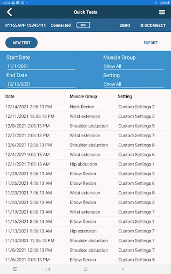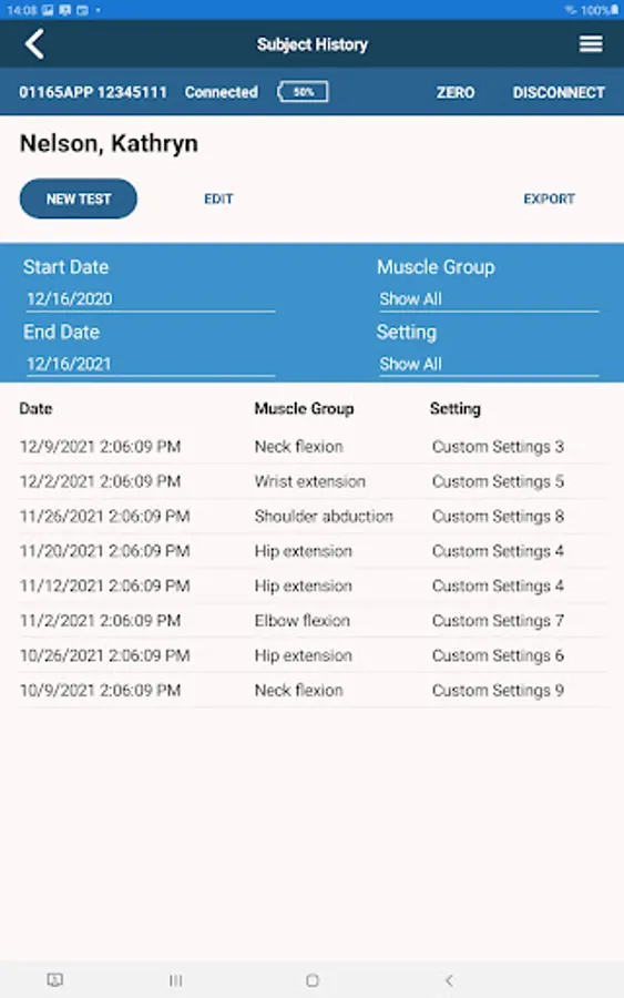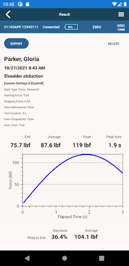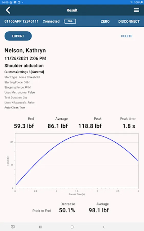 DynoData is designed to work in conjunction with Lafayette Instrument’s 01165APP Hand-Held Dynamometer. DynoData provides a wireless connection between the 01165APP Hand-Held Dynamometer and a tablet or smartphone. This connection allows for a real-time visual display of the force being applied to the dynamometer. Customizable test setups can be modified, saved and named within DynoData. Subject results can be conveniently stored on the tablet for data analysis and easy export of raw data. With simple controls, DynoData will improve the organization and efficiency of patient care. Contact Lafayette Instrument for more information.