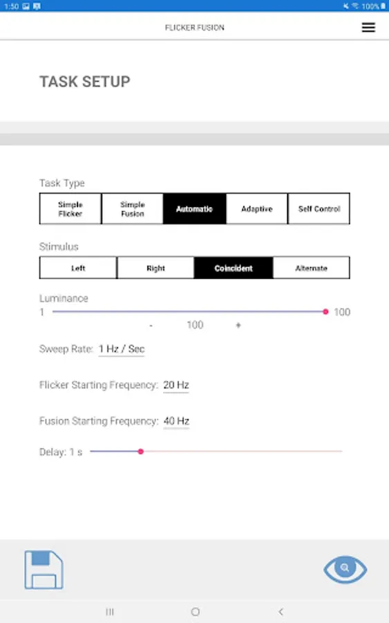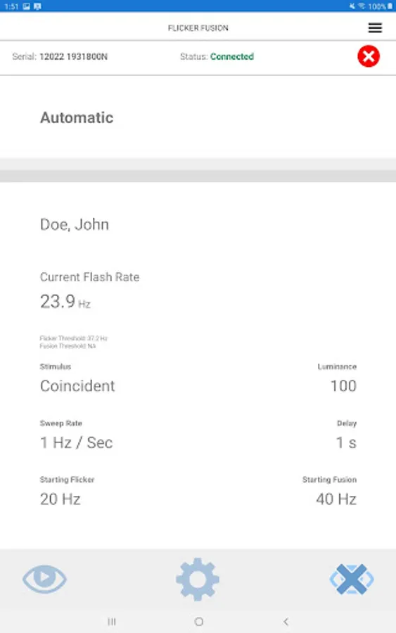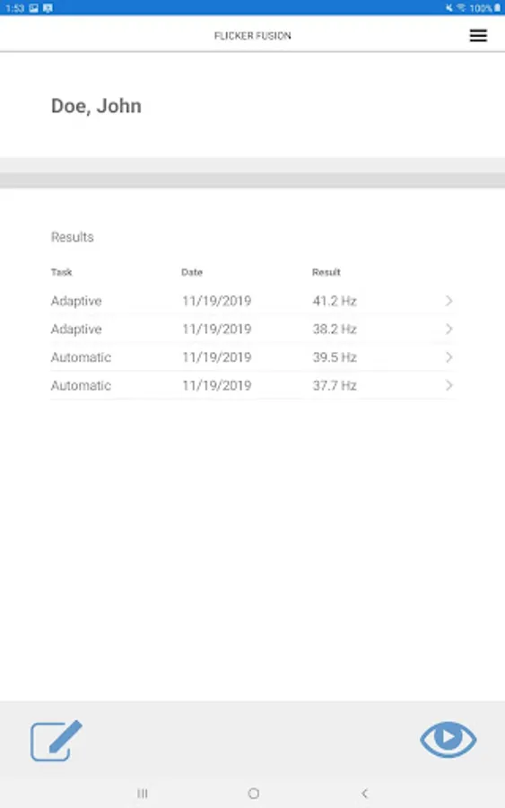 The Flicker Fusion administration application works in conjunction with the Lafayette Instrument Flicker Fusion system. The app allows an administrator to create/control a Critical Flicker Frequency (CFF) exam as well as store the results by examinee. The Flicker Fusion is for use in education and research and is not intended for medical or diagnostic purposes.
