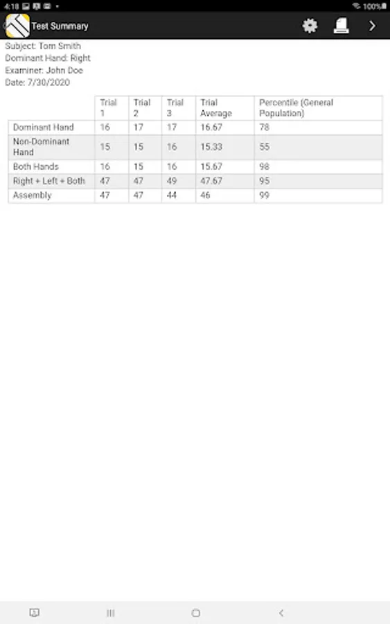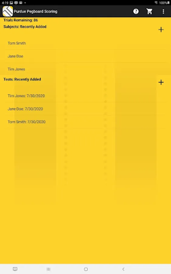 This scoring application is intended for use with the Lafayette Instrument Company Purdue Pegboard Test (Models 32020 and 32020A). It assists administrators in all areas of the testing process by standardizing administration through easily set up test batteries with optionally read instructions, creating organizational norms, and keeping track of individualized data.