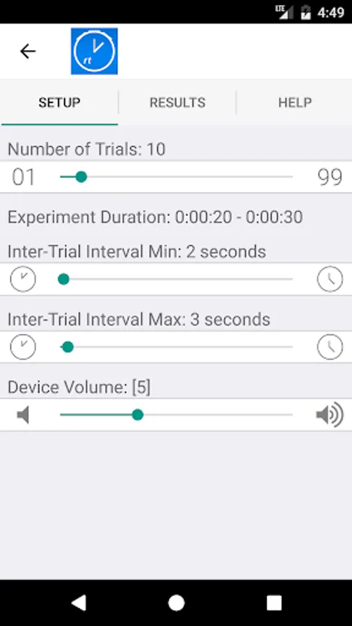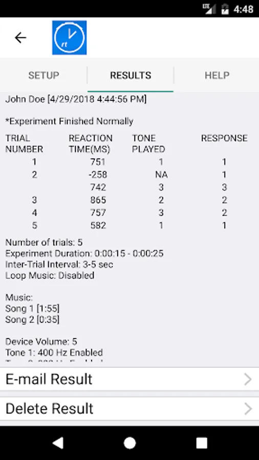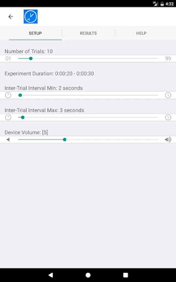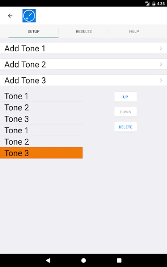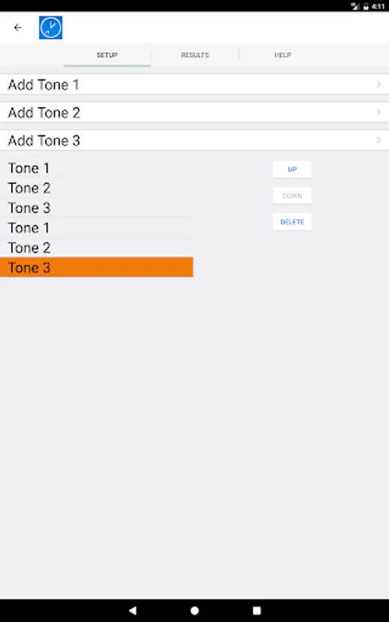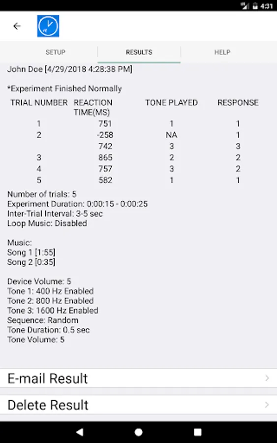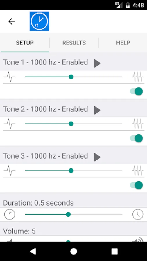 This application measures response times of the listener to a tone stimulus over background noise or music. The tone and background noise or music are user defined and have independent volume controls. Listeners must acknowledge hearing the tone by touching the screen in response. The subsequent results are reaction times to the stimulus. These reaction times can be used as an evaluation measure for both divided and selective attention.