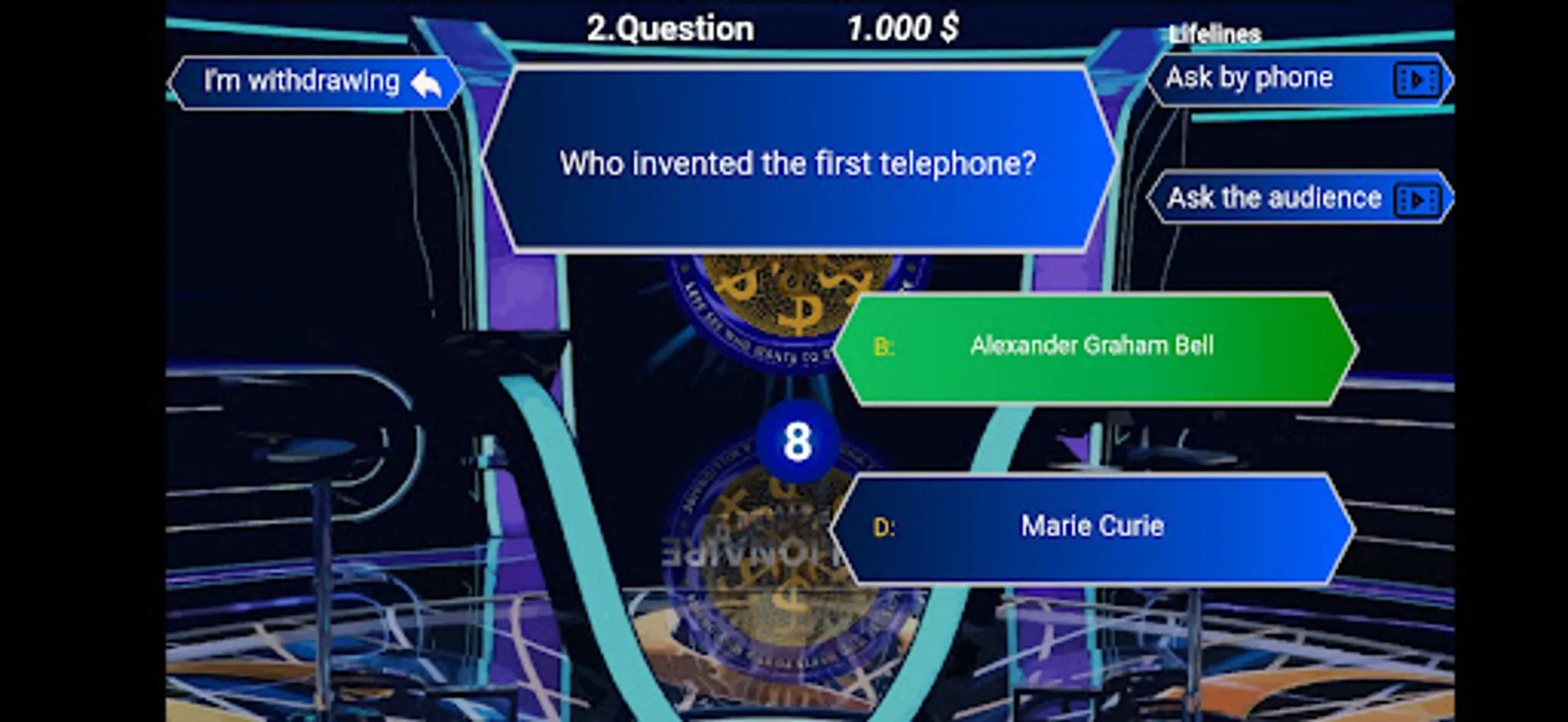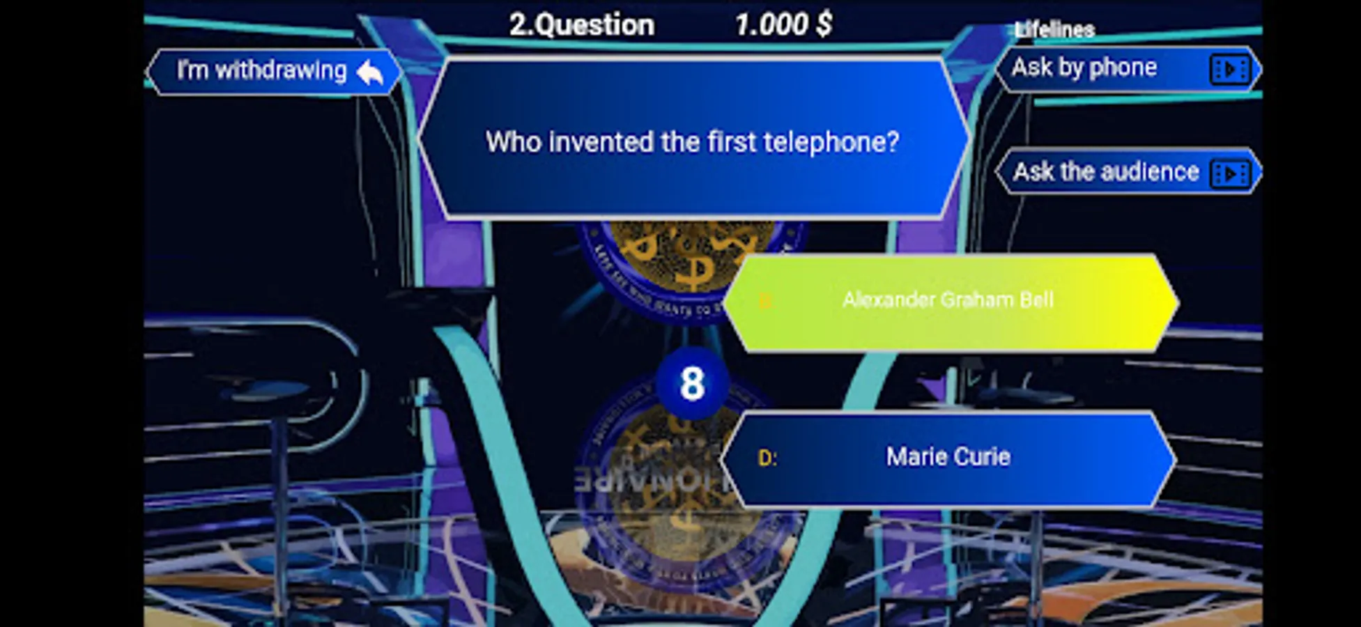 Who want to be a millionaire? Test your knowledge with the quiz game. With questions specific to Millionaire 2022. Who doesn't want to be a millionaire? Join this excitement and have fun with the millionaire contest. Enjoy with friends.