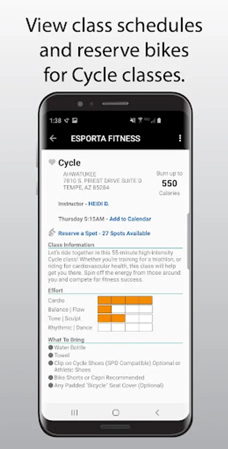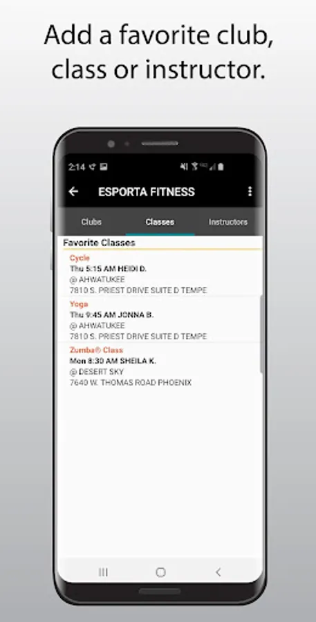 - Create quick access to your Favorite Clubs, Classes, and Instructors