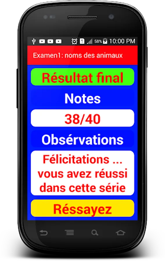 And answering the questions of the whole series, ie, the 40 questions, the application calculates and sums of your correct answers automatically, and give your rating on 40 immediately ...