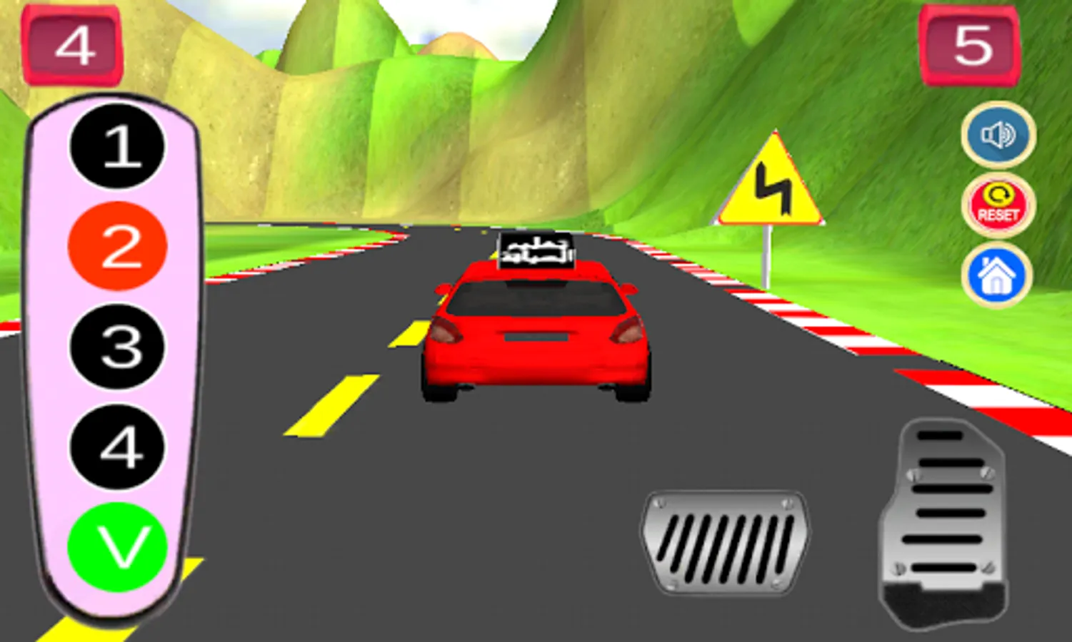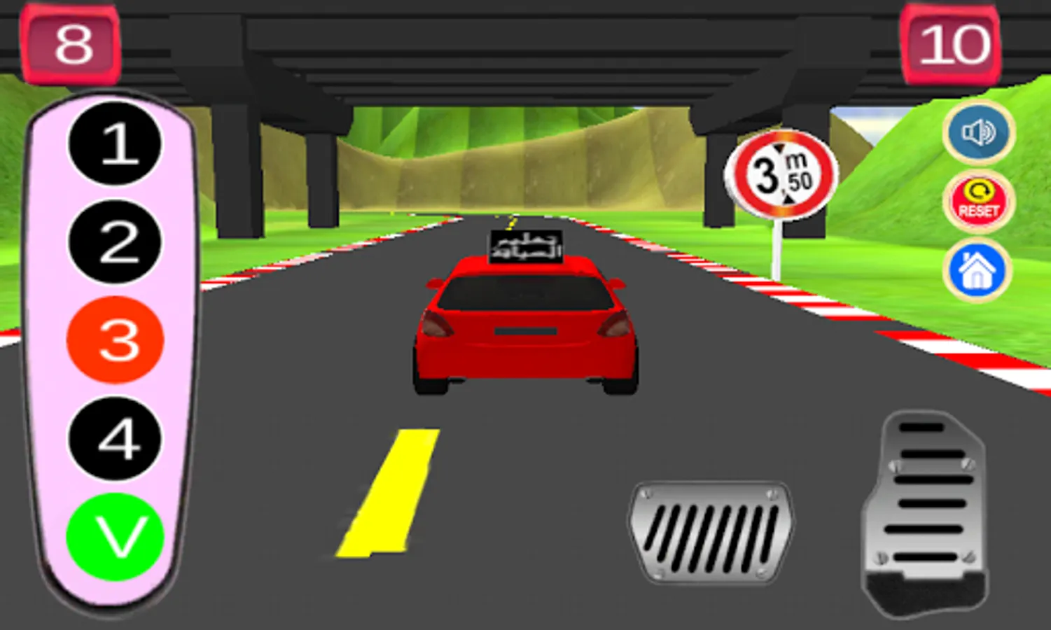 The content of the application is presented in the form of questions and answers, where you start by driving the car, watching the traffic sign, listening to the question, understanding it well, and then answering it.
