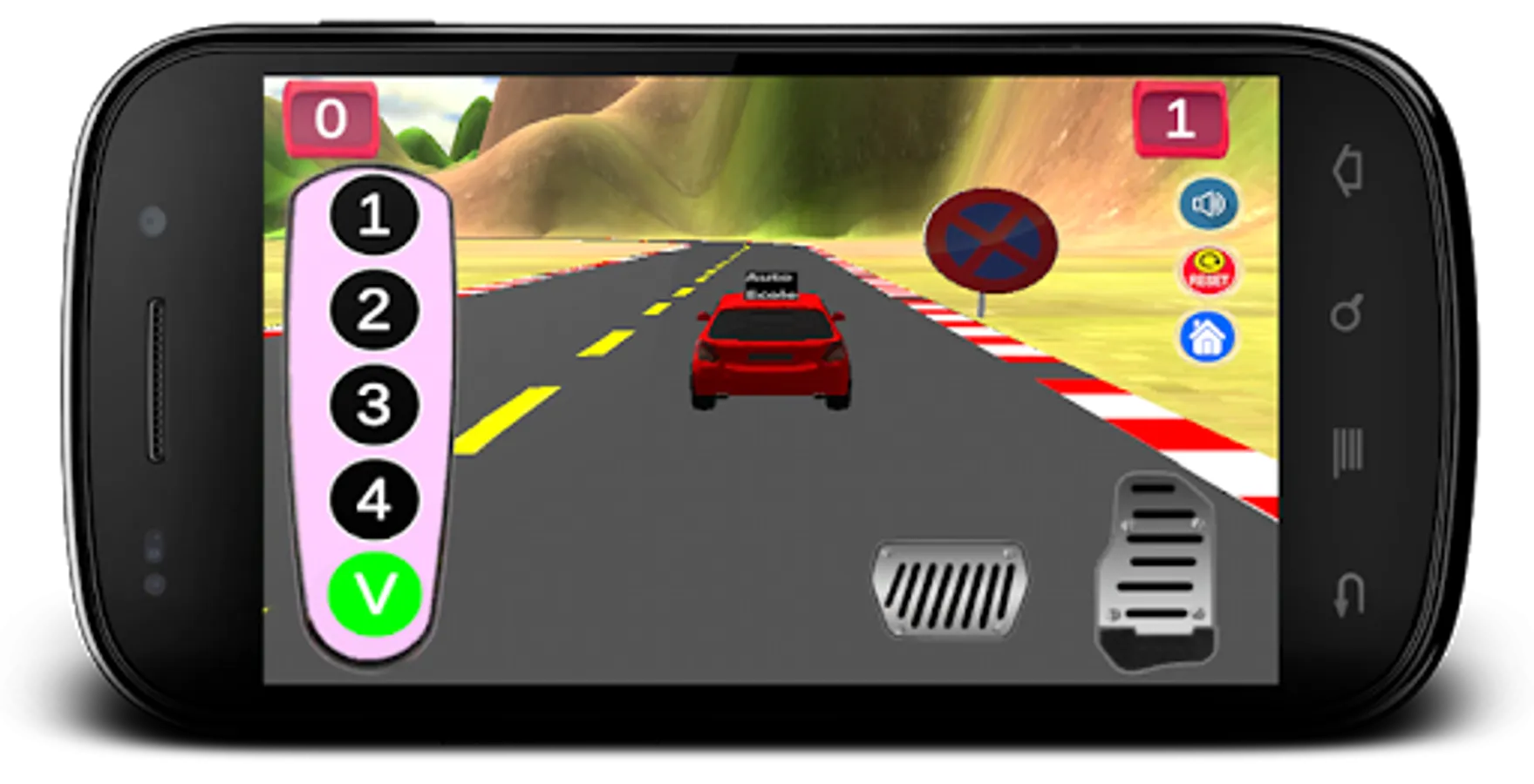 In the form of: Questions and answers, where the user begins to drive and answers 40 questions concerning the highway code.