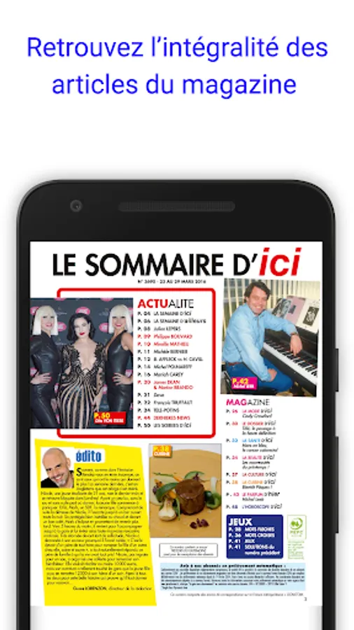 Your magazine Ici Paris mixes successfully, light subjects (La Mode Here, The Beauty of Here) with serious topics (The Health Here, the file here) and practical (cooking sheets).