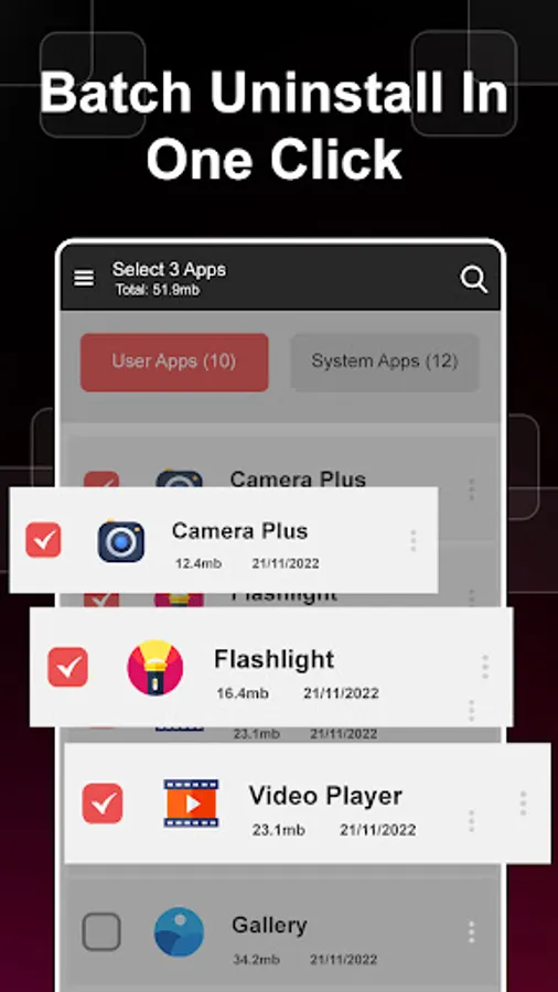 Everyone wants all of their favorite features in one tool, so with in-app removal, you can swiftly uninstall installed apps and discover all you need to know about them, such as app storage, data usage, and permissions details. You may also clear the app's cache and data.