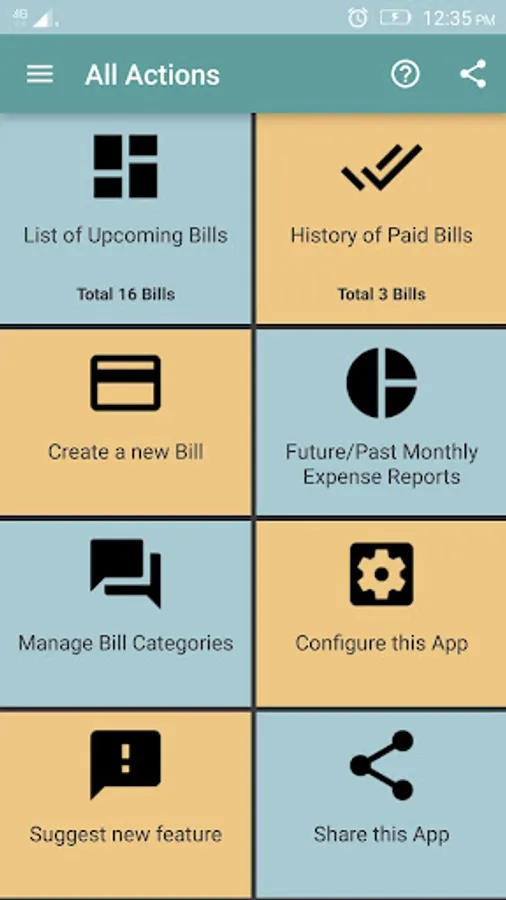 1. Create all of your recurring bills or onetime payment. Provide bill amount, bill category and due date. Check App screenshots for reference.