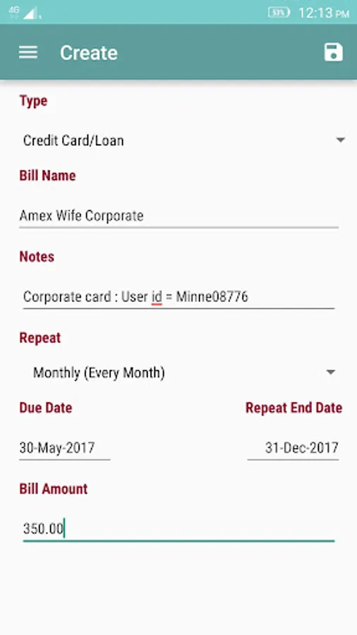 3. One can edit Name, Amount or Notes for that single bill or for all bills of one type.