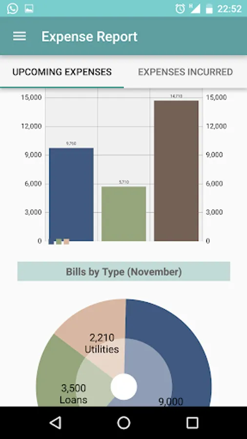 6. Expense Graphs displays upcoming month wise expenses for next months by category. Expense Graphs also shows expenses already incurred in last 1, 3 or 12 months by category.