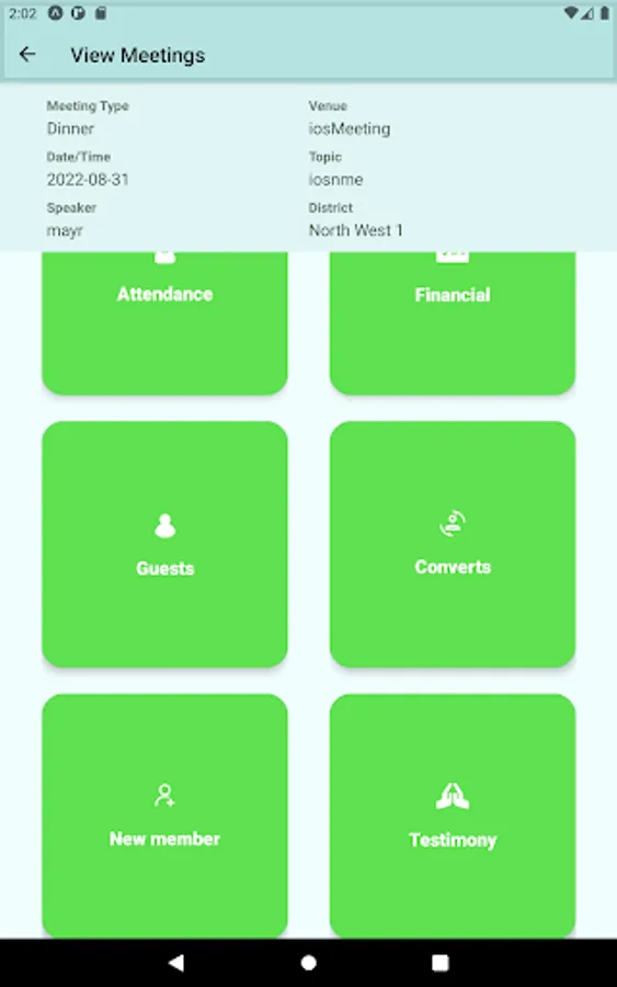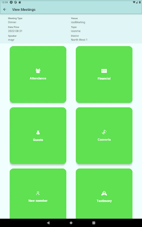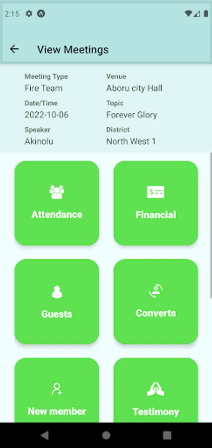 Capture and submit details from meetings, such as attendance, financial information, information about new guests, and testimonies.