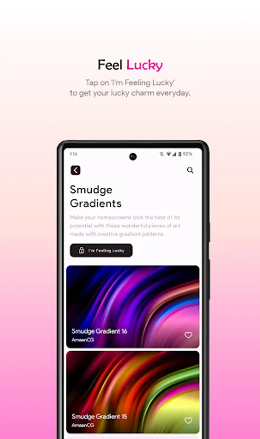 - Tap 'I'm feeling lucky' button to enjoy your lucky charm of the day.