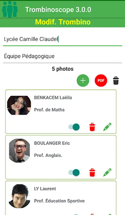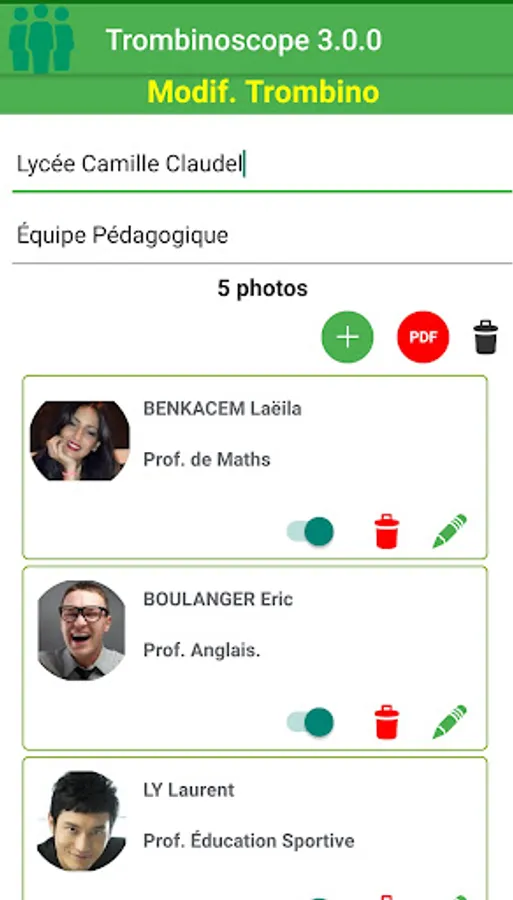 - To add / remove photos from the trombino: the PDF is updated automatically.