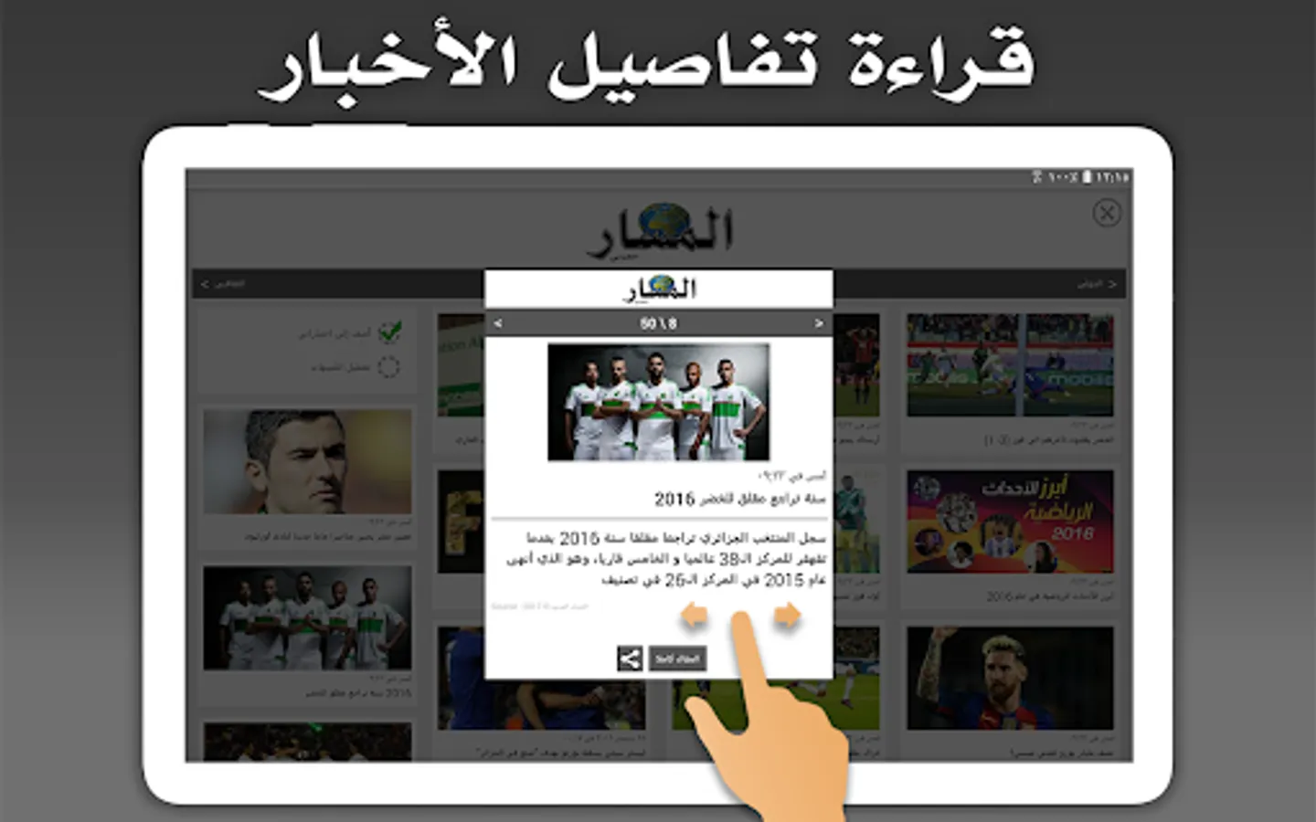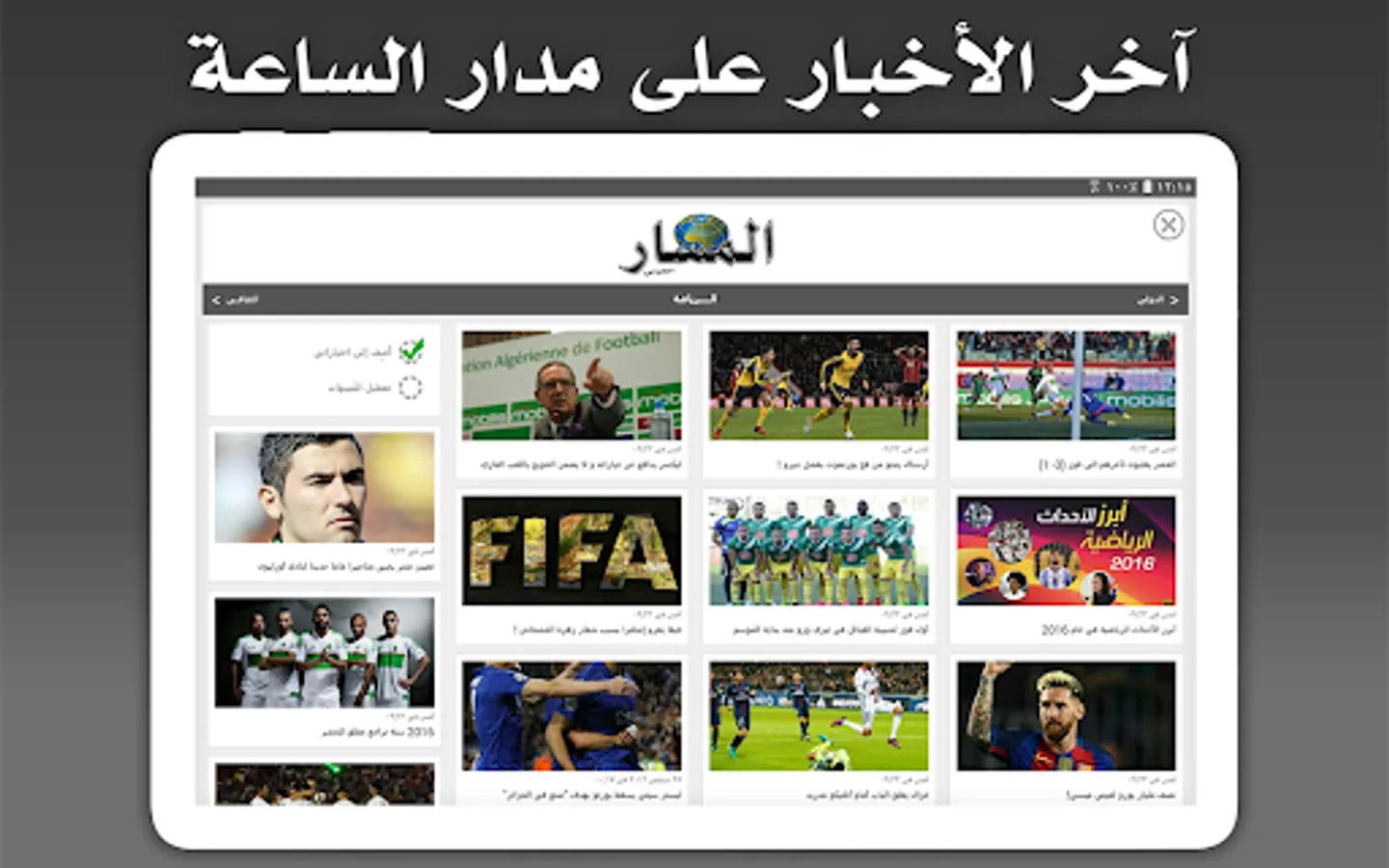 المقالات الإخبارية المعروضة مرتبة في عدة فئات : الجزائر، دولية، مدن، إقتصاد، رياضة، علوم و تكنولوجيا، فن و ثقافة، فيديو