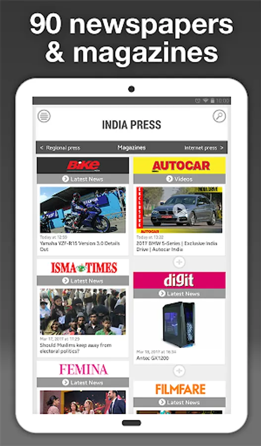 With India Press, explore more than 350 news feeds from 90 Indian newspapers and magazines.