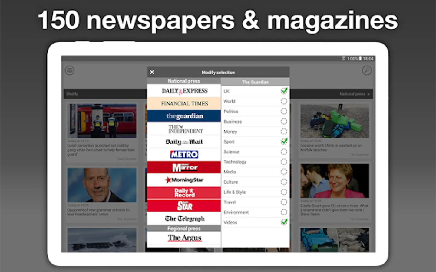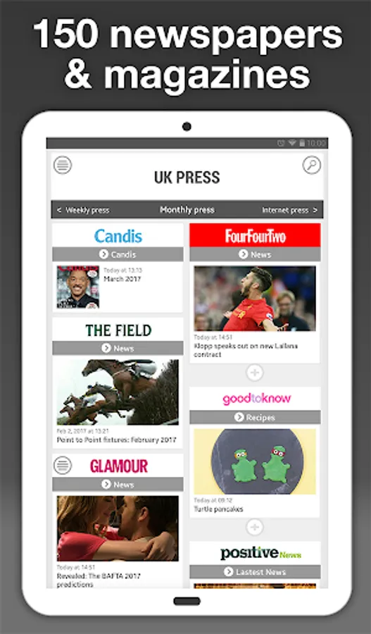 Explore more than 750 news feeds from 150 British newspapers and magazines.