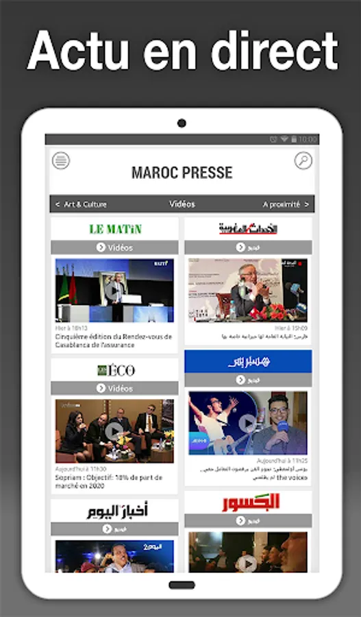 - Channels are sorted by categories : Morocco, international, cities, economy, sport, sciences & technologies, art & culture, videos.