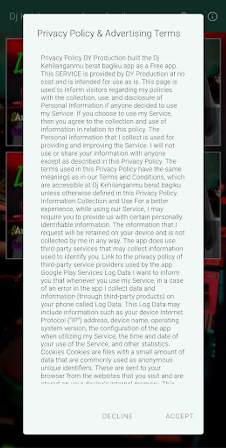 All content in this application is not the property of the application developer, we as the developer only collect it from the web public creative commons and do not upload it ourselves. The copyright of all songs and lyrics in this application belongs to the creators, musicians and music labels concerned. If you are the copyright holder of the songs in this application and don't want your song to be displayed, please contact us via the developer / developer email that we have provided and tell us about your ownership status for the song. we will be very respectful and immediately delete the song or lyrics in question if necessary. Finally, if there is an unintentional error, we apologize profusely.